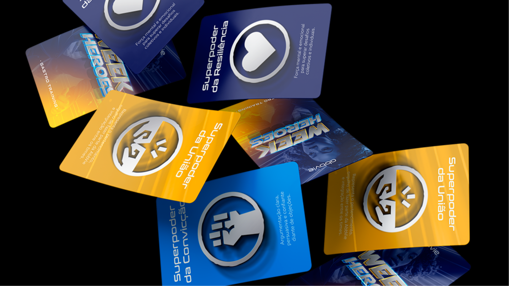 Cada participante recebeu um card exclusivo com seu “superpoder”, reforçando pertencimento e criando um elemento lúdico e memorável.